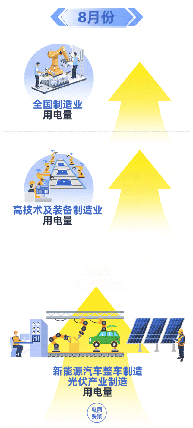 今年7至8月,第二产业用电量持续增长,在用电量“总盘子”中占比最高,工业经济平稳发展、稳中有进。